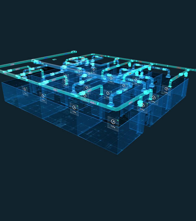 对洁净风系统进行数字孪生建模,建模过程中将现场实际设备与平台数据库中的模型匹配,数字还原风系统,并基于高精度的模型进行寻优计算,实现系统的节能优化控制。